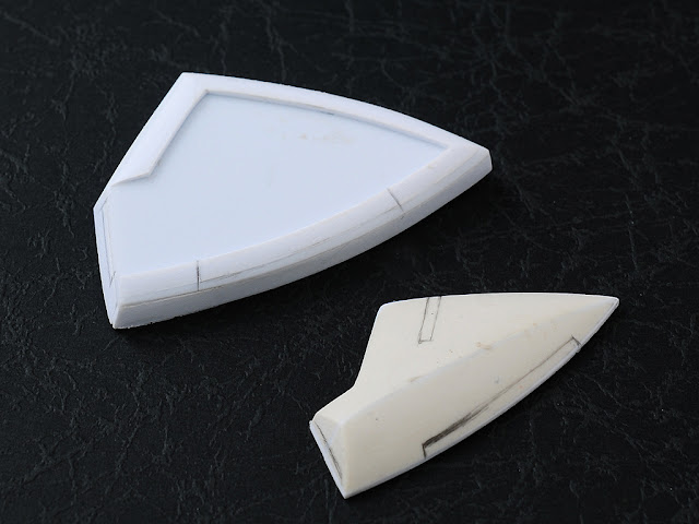 Always a setback when come to SB a curvature profile on Gunpla , thinking of how to ensure the parts accuracy when mirrored left-right or front-rear, especially a 3D curvature profile.So as for myself , pre-shape plaplate template as foundation still the best way for this matter.